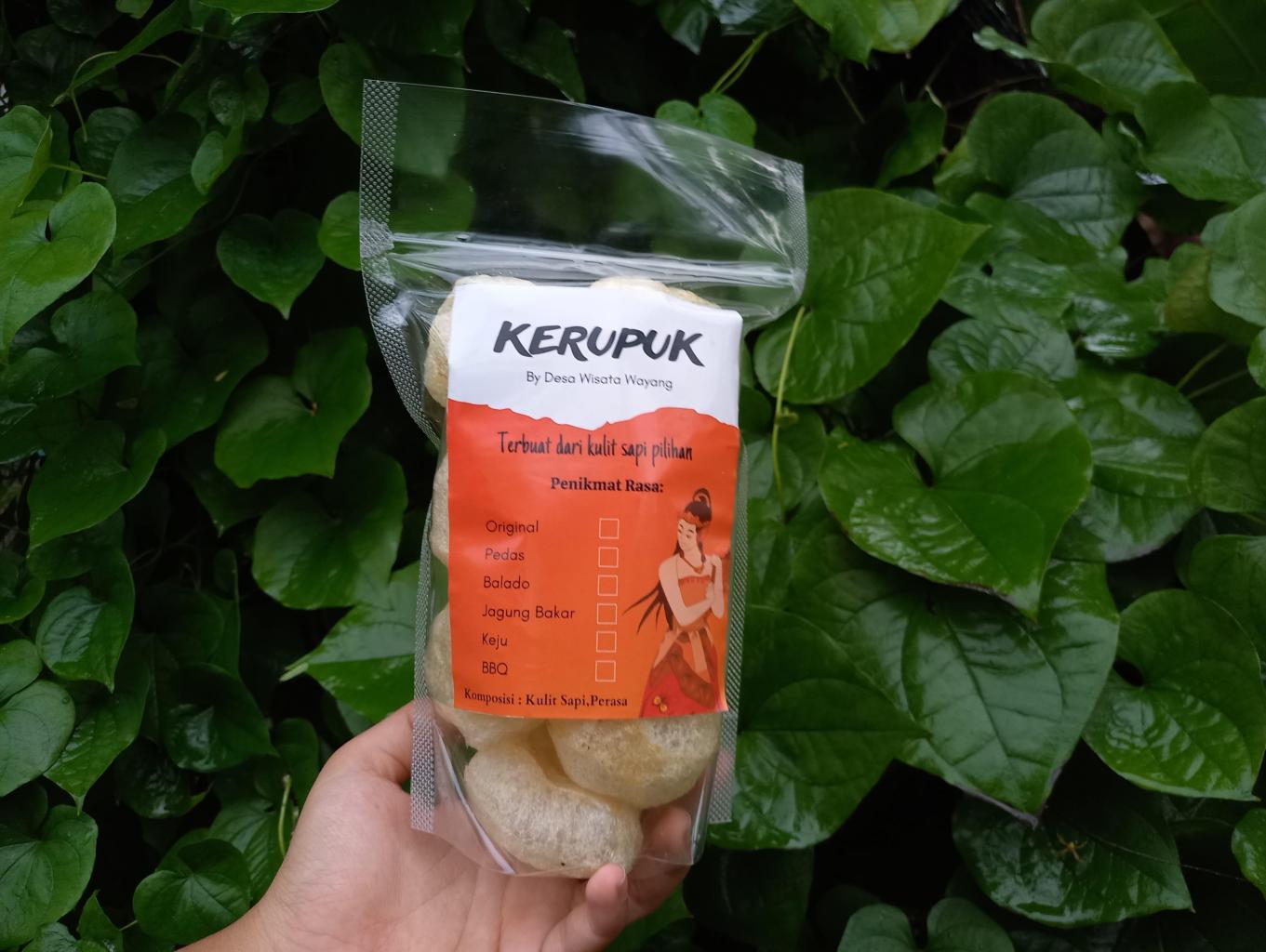 Di Desa Wisata Wayang sudah tidak asing lagi mendengar kata kerupuk, terutama kerupuk kulit sapi. Kerupuk yang terbuat dari kulit sapi  ini  diolah dan diberi bumbu rempah penambah rasa. Karena banyaknya kulit sisa wayang membuat Ibu ibu sekitar inisiatif untuk mengolah kulit tersebut menjadi kerupuk kulit