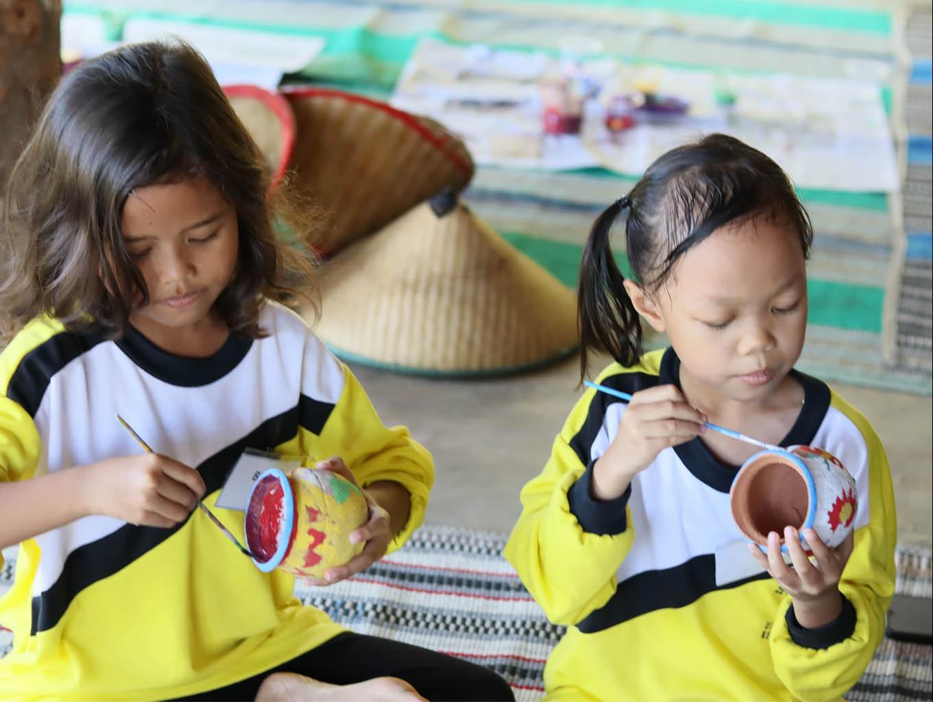 Lukis gerabah merupakan salah satu paket yang diminati karena selain memperoleh edukasi tentang peralatan dapur tradisional yang terbuat dari tanah liat (gerabah), para wisatawan dapat mengekspresikan karya seni melalui lukisan dengan media gerabah ini.